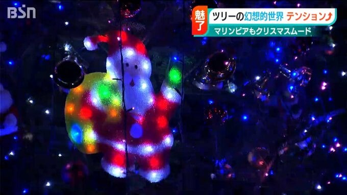 クリスマスまでおよそ1か月となった11月23日、新潟市の水族館『マリンピア日本海』で恒例の「クリスマスツリー」がお披露目され、海の世界とイルミネーションとが織りなす幻想的な世界が広がっています。