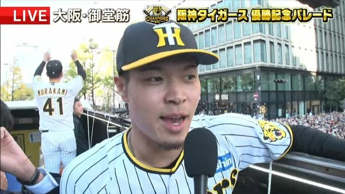 「神戸に続いて大阪もすごい人で嬉しい。みんなの顔が見えて近い。最高です、優勝したチームしかできないので。もっともっとファンを沸かせるようになりたい、よろしくお願いします」