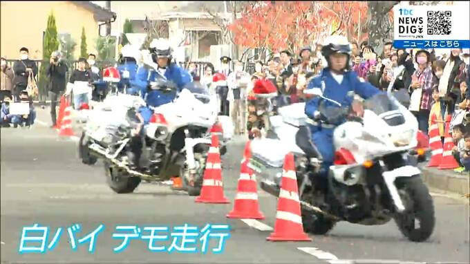名取市愛島郷の県警察学校で開かれた文化祭「愛島祭(めでしまさい)」。校内が一般に開放され大勢の家族連れらが訪れました。交通機動隊による白バイのデモ走行では迫力あるパフォーマンスが披露されました。