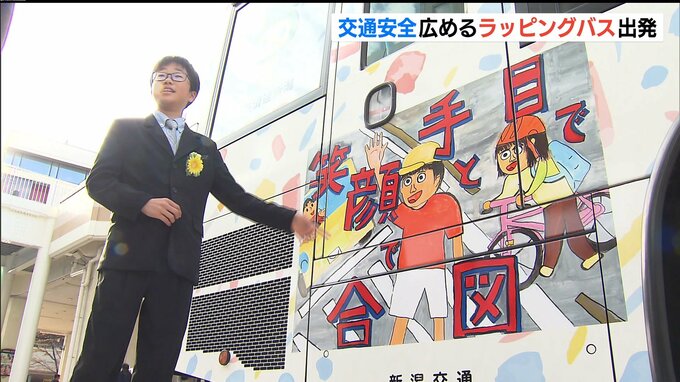交通安全の大切さを広めるラッピングバスの出発式が新潟市で行われました。