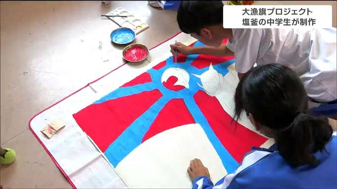 プロジェクト開始から3か月が過ぎた9月14日。塩釜市の魚市場でついに大漁旗がお披露目されました。