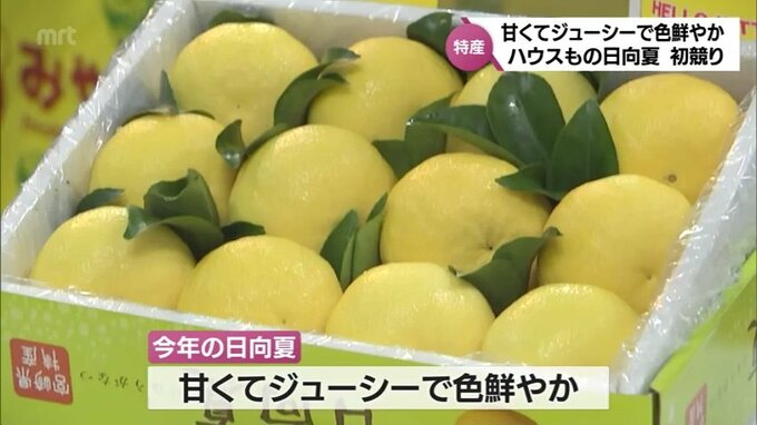 ハウスものの日向夏の販売が解禁となりました。宮崎市では、24日朝、初競りが行われ、過去10年間で1番の高値で取り引きされました。JA宮崎経済連によりますと、ハウスものの日向夏は、現在、県内34戸の農家が生産…