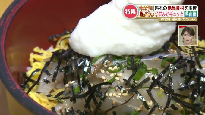 道の駅たのうら 山田良介 駅長「今から旬なんですけどね、すごい脂が乗って、甘味があってうまい。 このまま食べてもすっごくおいしいんですけど、とろろ。 どんとかけると…うま!本当においしい」