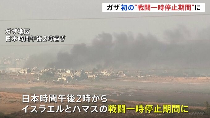 パレスチナ自治区ガザで、イスラエル軍とイスラム組織ハマスの間で続く戦闘について、先ほど日本時間午後2時から、一時停止期間に入りました。日本時間午後2時から、イスラエルとハマスの戦闘の一時停止期間に入り…
