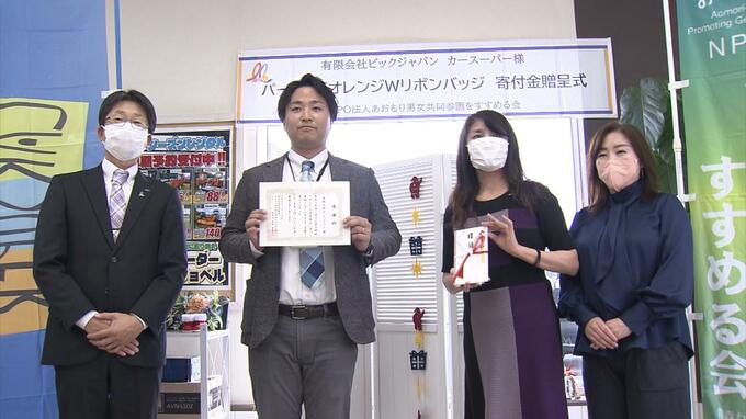 女性や子どもに対する暴力をなくす運動に役立ててもらおうと、青森市の自動車販売会社がジェンダー平等を目指すNPO法人に寄付金を贈りました。寄付金を贈ったのは、自動車販売店「カースーパー」を展開するビック…