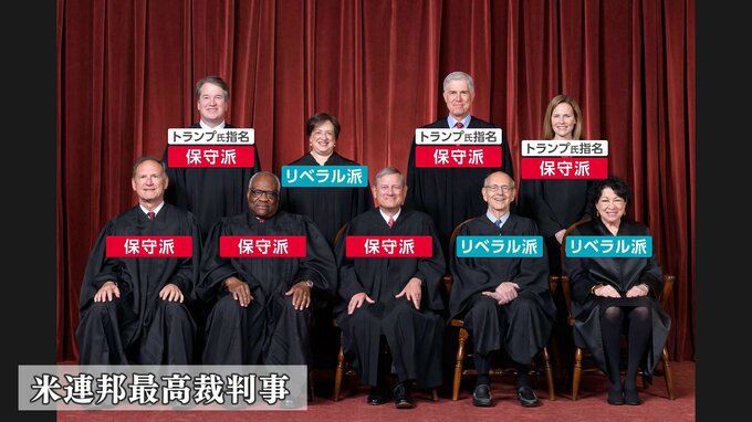 アメリカの最高裁判事は9人。そのうち、トランプ氏が在任中、3人の保守派の判事を指名し、保守派が6人、リベラル派が3人という内訳になっていました。