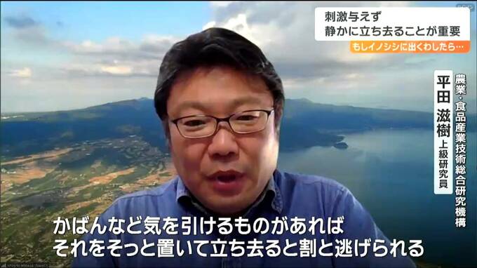 平田さんは、もしイノシシを見かけたら警察や市町村に報告し、近くで出没情報があったらなるべく家や車から出ないなどの予防が重要だと話していましたす。