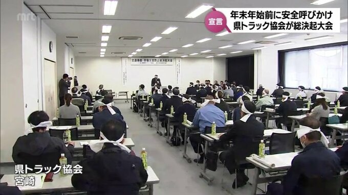 年末年始を前にトラックドライバーに安全運転を呼びかける総決起大会が宮崎市で開かれました。県トラック協会が開いた大会には、会員およそ80人が出席。牧田信良会長らがあいさつし、交通事故と労働災害の防止を呼…