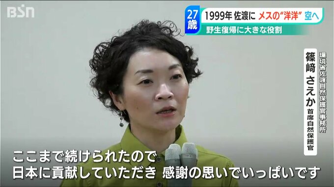 【環境省佐渡自然保護官事務所 篠崎さえか 主席自然保護官】「『洋洋(ヨウヨウ)』と『友友(ヨウヨウ)』のおかげで日本の野生復帰事業というのがここまで続けられたので、日本に貢献していただき感謝の思いで一杯です。ありがとうございましたという気持ちをかけてあげたかった」