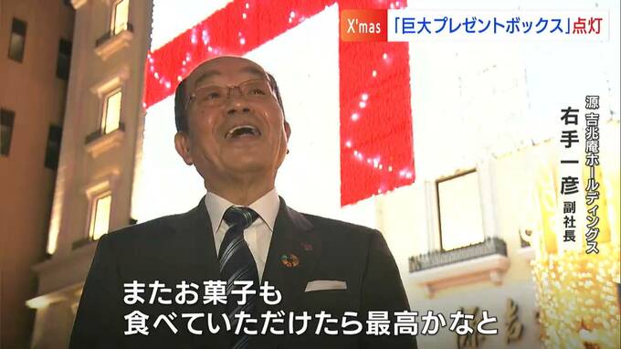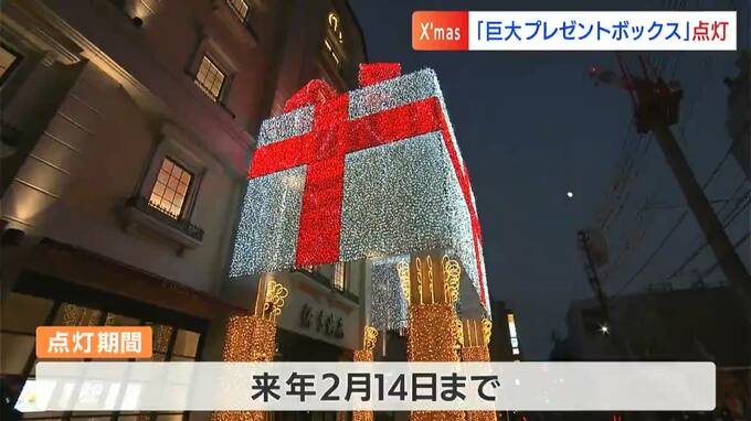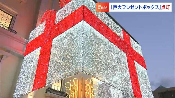 きょう(24日)午後5時に点灯式が行われ、巨大なプレゼントボックスに灯がともりました。