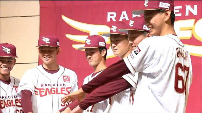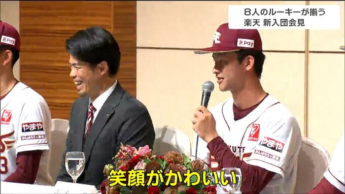 楽天イーグルスは24日、新入団会見を行い、新たにチームへ加わるフレッシュな8人が顔を揃えました。