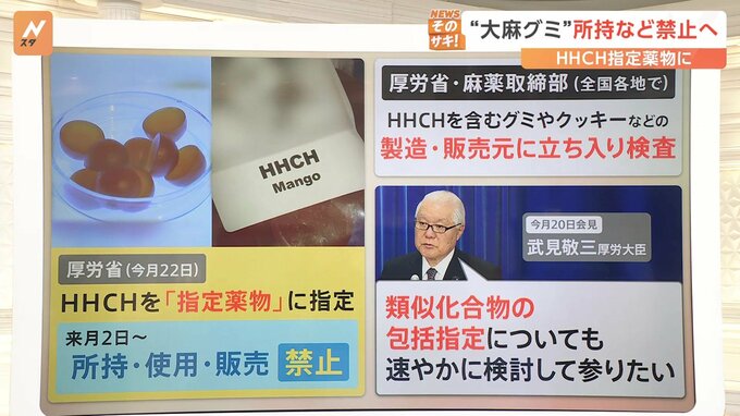 さらに武見敬三厚労大臣は20日の記者会見で「類似化合物の包括指定についても速やかに検討して参りたい」と話していました。