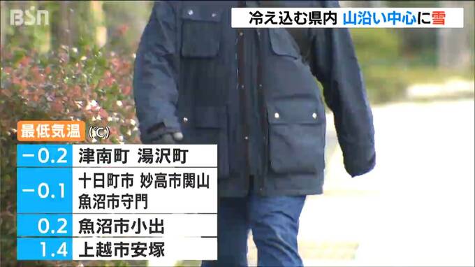 25日の新潟県内は朝から冷え込み、冬型の気圧配置の影響で山沿いを中心に雪が降りました。