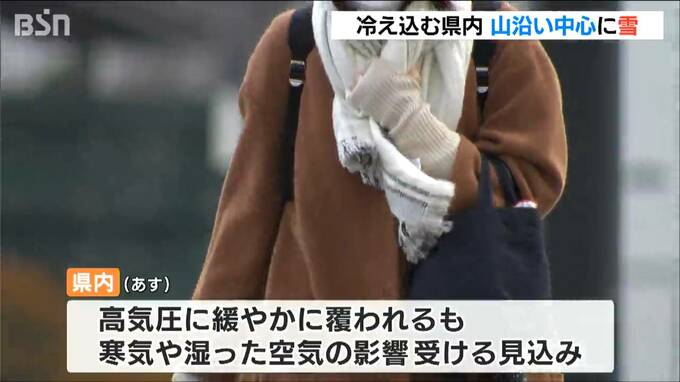また、冬型の気圧配置の影響で、県内は山沿いを中心に雪が降りました。