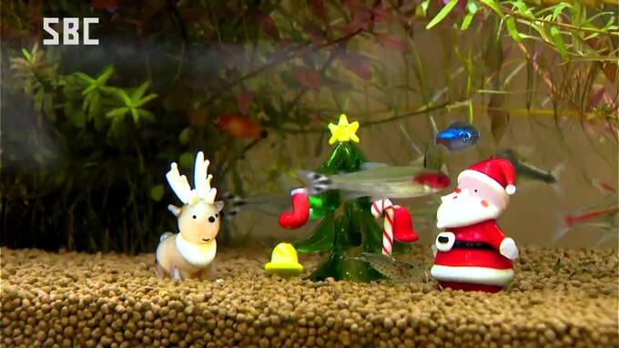 安曇野市にある国営アルプスあづみの公園堀金・穂高地区で、冬のイルミネーションに合わせて熱帯魚などの水生生物の展示が行われています。水槽の中を泳いでいるのは、真っ赤な体に星のような白い模様があるシロボ…