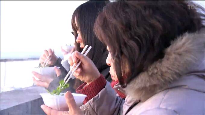 名取市でのセリの収穫は来月、最盛期を迎えるということで、訪れた人たちは新鮮なセリの香りと食感を楽しみながら冷えた体を温めていました。