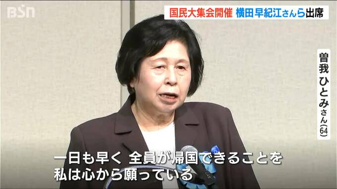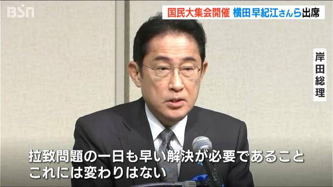 東京で開かれた国民大集会には拉致被害者横田めぐみさんの母・早紀江さんや拉致被害者の曽我ひとみさん(64)、岸田総理らが出席しました。