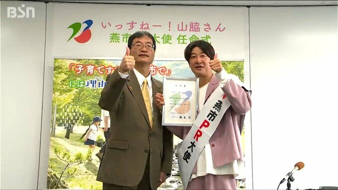 山脇さんがテレビのバラエティ番組などで活躍していることや妻が燕市出身であることなどからPR大使に任命されました。