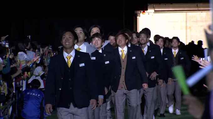 ホークスのファンフェスティバル「鷹奉祭(たかほうさい)」が26日、PayPayドームで開催されました。 甲斐野投手の歌とともに入場したホークスの選手たち。今年のファンフェスティバルも学園祭をテーマに…