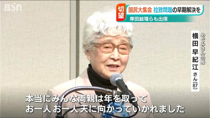 【横田早紀江さん】「本当にみんな両親は年をとって、お一人お一人、天に向かっていかれました、本当にさみしい限りです。どうか、一刻も早く、日本人である、日本人らしい姿で、日本で生活ができるように」