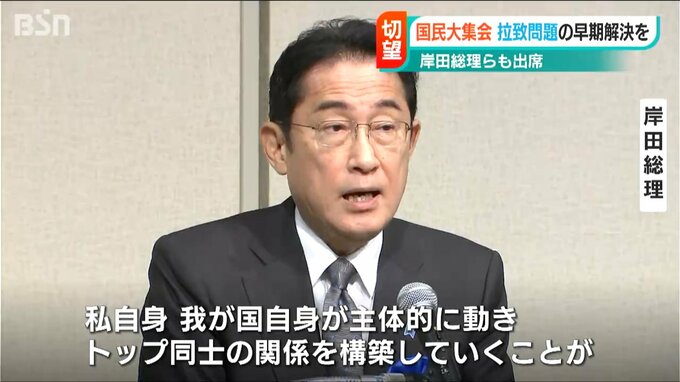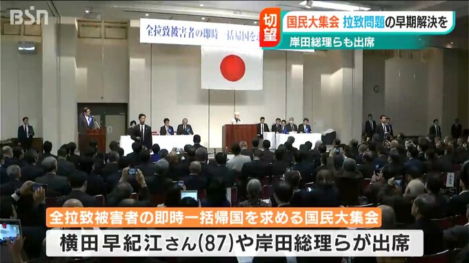 拉致被害者 横田めぐみさんの母 早紀江さん 87歳や岸田総理らが出席した「全拉致被害者の即時一括帰国を求める国民大集会」。