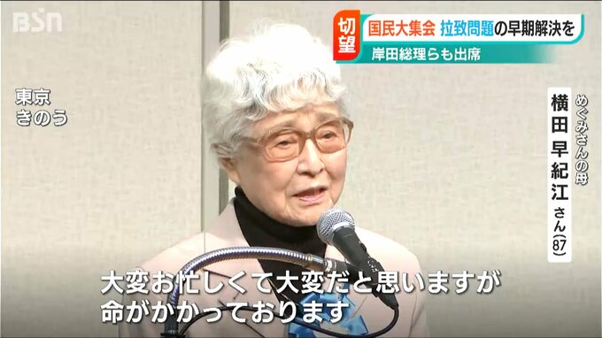 【横田早紀江さん】「政治の皆様方も総理も、本当に皆様方も、大変お忙しくて大変だと思いますが、命がかかっております。」