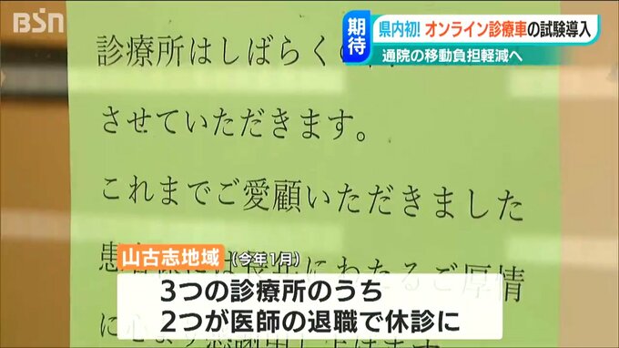 中山間地などの診療所へ通うアクセスが困難な地域で、高齢者などの受診機会を増やそうと、新潟県内で初めて『オンライン診療車』の試験導入が始まりました。