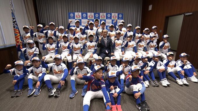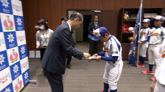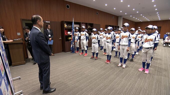 少年野球の日本一を目指す「岡山庭瀬シャークス」の選手たちが岡山市役所を表敬訪問し、全国大会での活躍を誓いました。