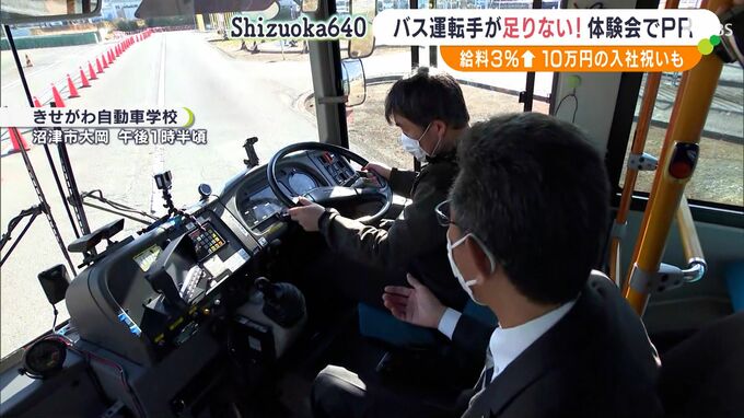 静岡県内では、乗務員不足を理由に減便せざるをえないバス会社も出始める中、バス運転手の魅力を知ってもらおうと体験会が開かれました。沼津市大岡の自動車学校で、バス会社などが合同で開催した運転体験会には6…