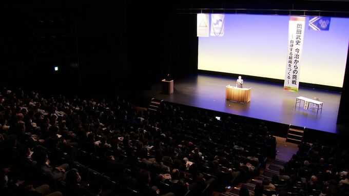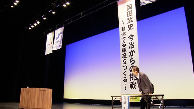 サッカー日本代表の元監督、岡田武史さんが岡山市北区で「自律する組織をつくる」をテーマに講演を行いました。