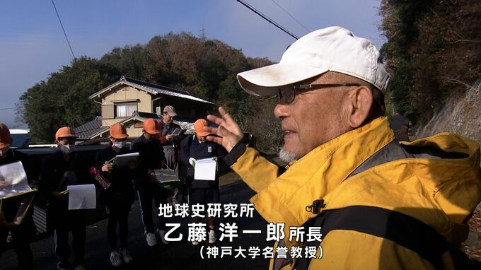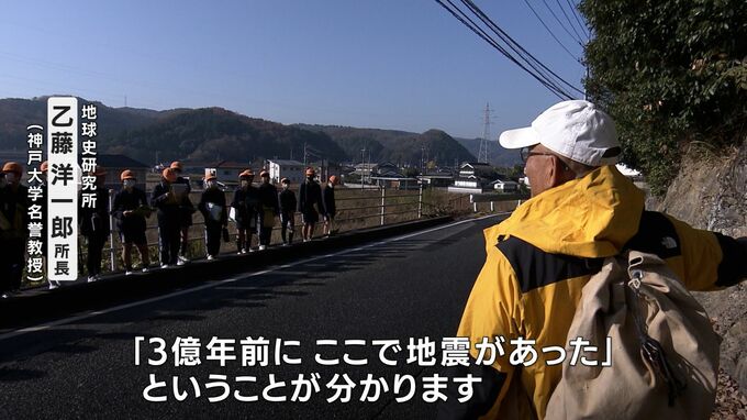 「『3億年前にここで地震があった』ということがわかります。これを見ながらもういっぺん『地震だなあ』と思って、『自信』をつけてください(笑)」