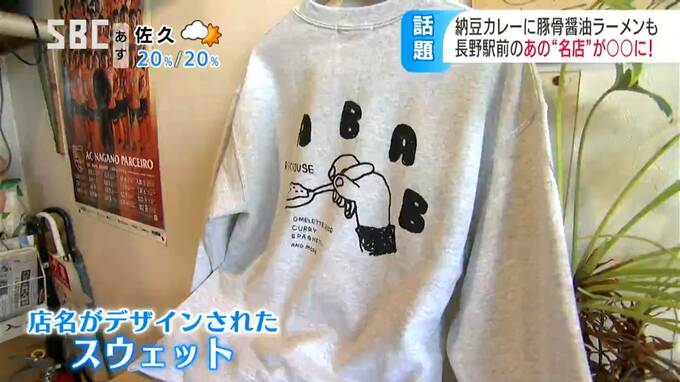 長野駅前の飲食店の名店を応援しようと、地元のアパレルショップが、それぞれの店のロゴマークや人気メニューをあしらったトレーナーやトートバッグを作りました。