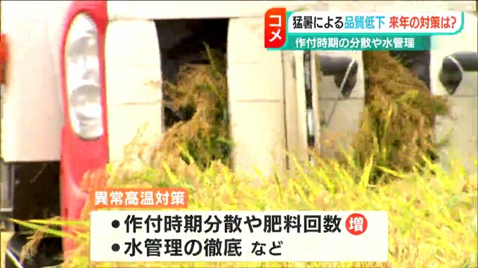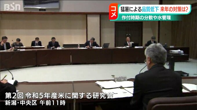 記録的な猛暑によるコメの品質低下を受け新潟県の研究会が来年に向けた猛暑対策の案をまとめました。作付け時期を分散したり肥料を増やしたりすることが対策の柱となりそうです。
