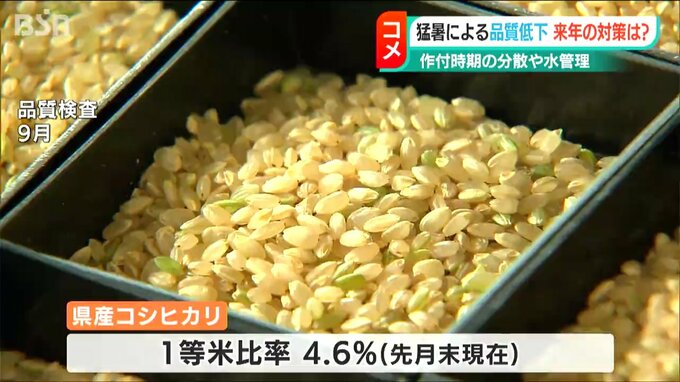 夏の猛暑と水不足でコメの品質は大きく低下し、新潟県産コシヒカリの1等米比率は先月末現在4.6パーセントになっています。