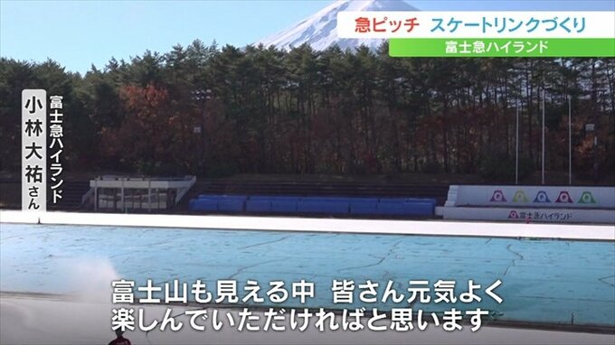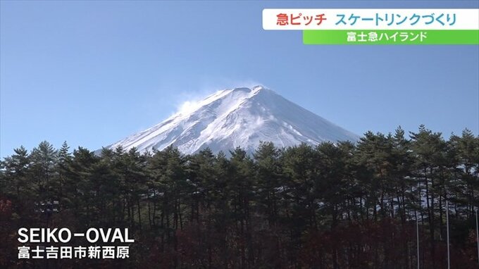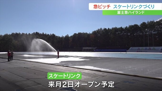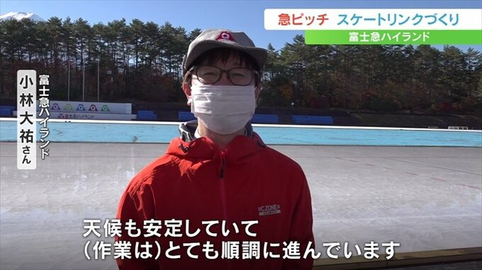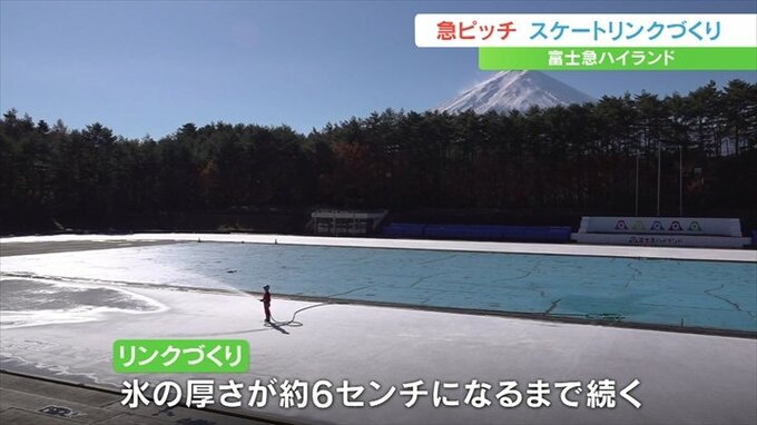 山梨県富士吉田市の富士急ハイランドでスケートリンクづくりが急ピッチで進められています。