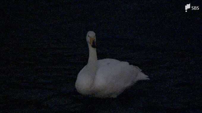 この白い鳥、静岡県西部では、めったに見ることはないオオハクチョウです。