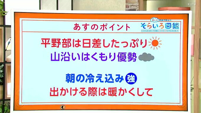 29日は、平野部は日差したっぷりですが山沿いでは、雲が多めになりそう。朝の冷え込みが強まりますので、お出かけの際は暖かい服装で!東杜和気象予報士が高知の天気を詳しく解説します。