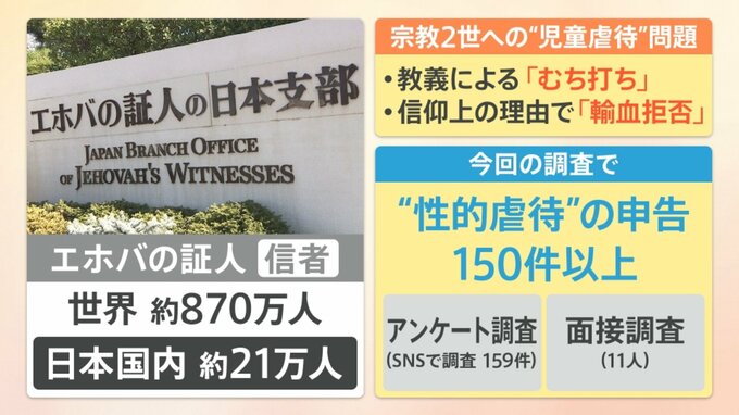 エホバの証人の宗教2世をめぐる問題では、調査結果で「性被害があった」とする内容が明らかになりました。