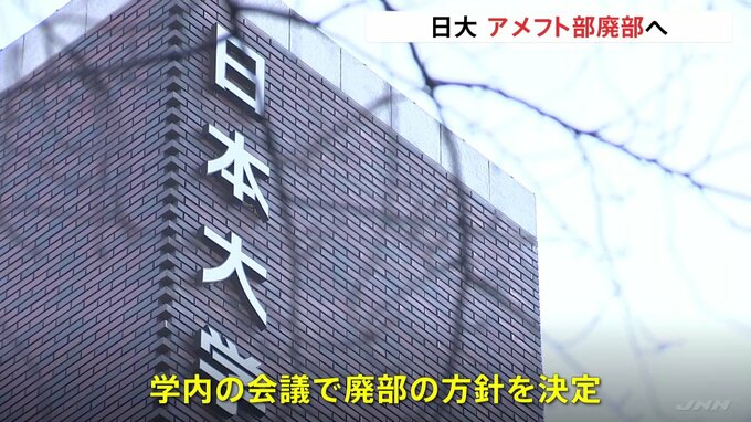 薬物事件で揺れる日本大学アメフト部について、大学側が廃部にする方針を固めたことが関係者への取材でわかりました。今週行われた学内の会議で廃部の方針が決定したということです。日大アメフト部の薬物事件をめ…