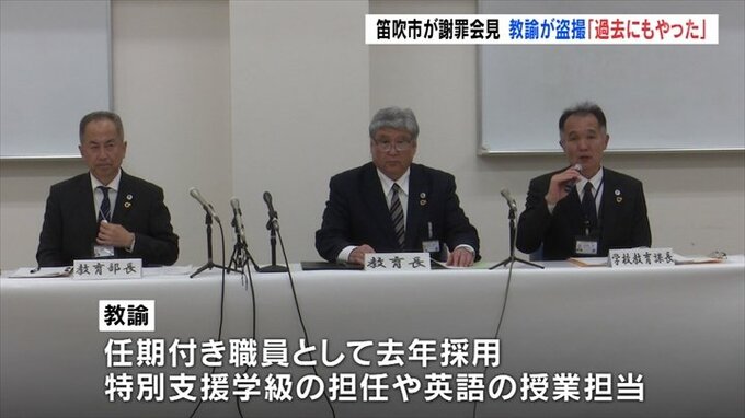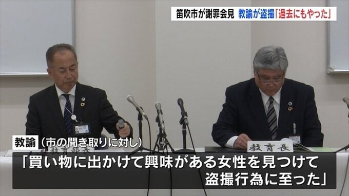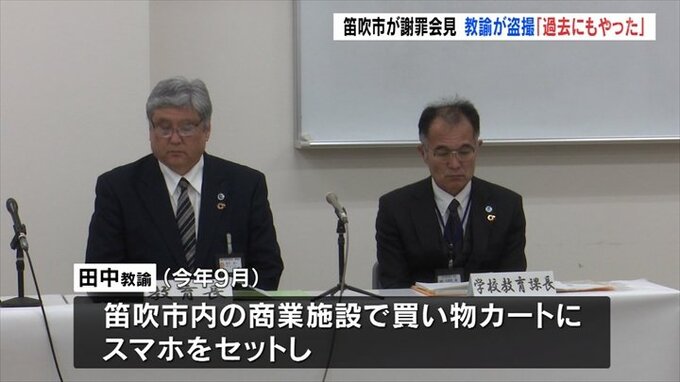 山梨県笛吹市の中学校の教諭が商業施設で盗撮し懲戒免職になったのを受け、市が会見を開き謝罪しました。
