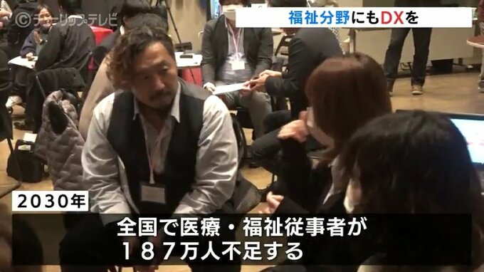 2030年には全国で医療・福祉従事者が187万人不足するというデータも示され、参加者は福祉の分野でのDXの必要性に理解を深めていました。