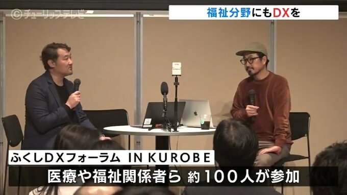 「ふくしDXフォーラムINKUROBE」は、福祉分野のデジタル化「DX」をテーマに一般社団法人SMARTふくしラボなどが企画したもので医療や福祉関係者らおよそ100人が参加しました。