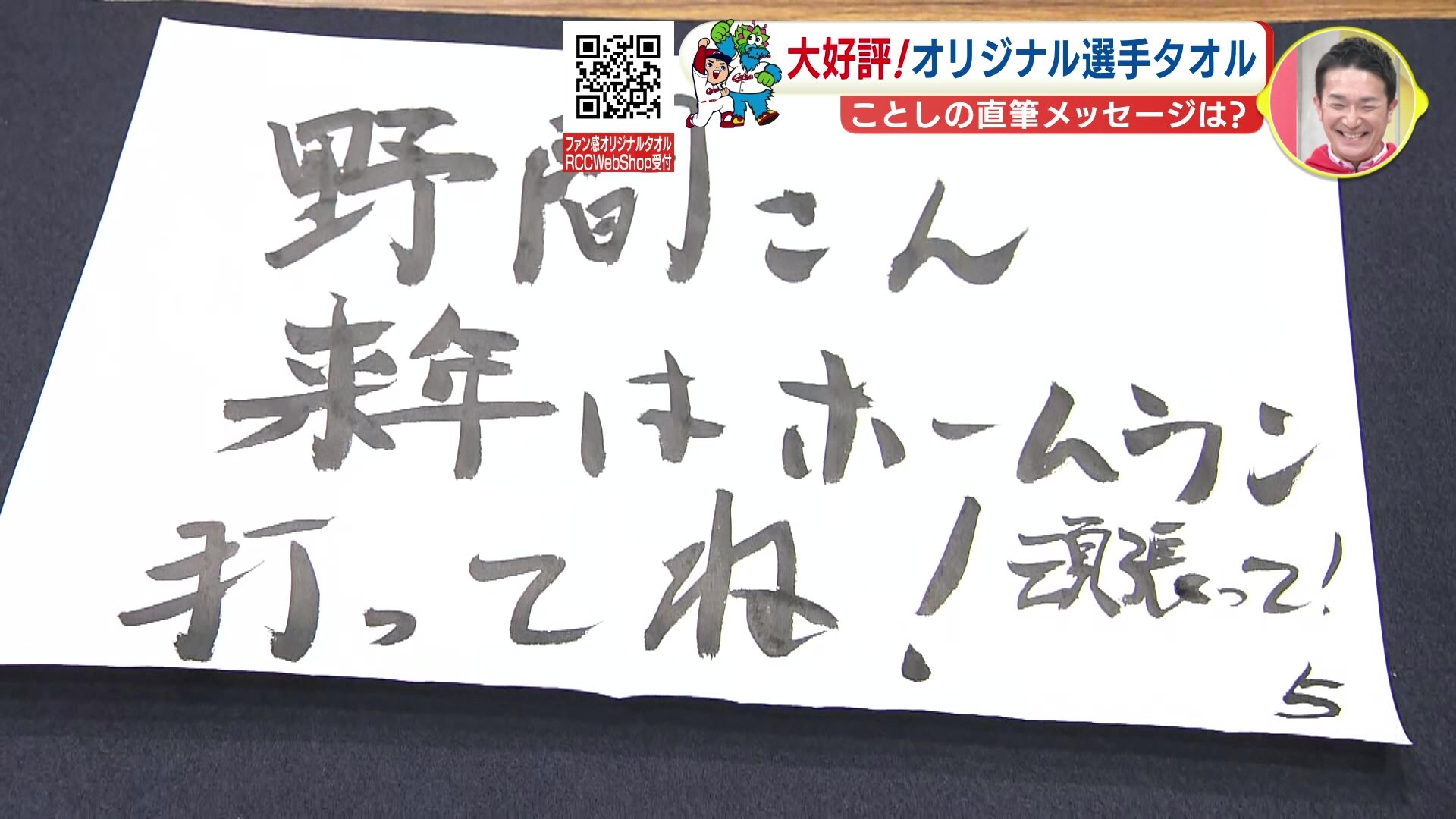 選手の字を見られることもいいですし、選手が考えてくれたメッセージがタオルにプリントされているのもちょっとうれしかったりします。