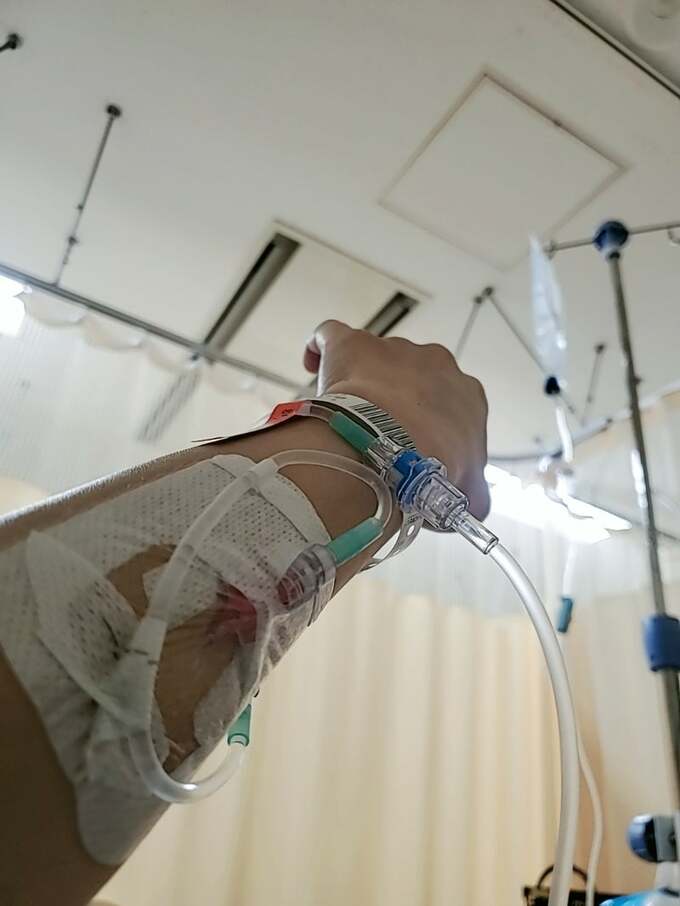 鵜飼さんは「ども!無事手術が終わり病室に戻ってきたよ まほです」と書き出し「まだ点滴に繋がれております 痛み止めも入れてくださいました。あと1時間くらいで取れるみたい」と、点滴のつながれた左腕の写真を添えて、無事に手術が終わったことを報告。