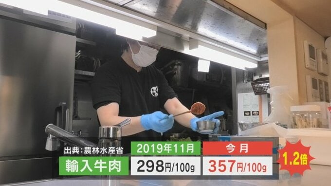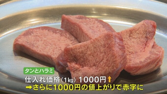 こちらの店舗で主力のタンとハラミの1㎏当たりの仕入れ価格は1000円上がり、さらに1000円の値上がりで赤字になるため健全な経営に何が必要か模索しています。