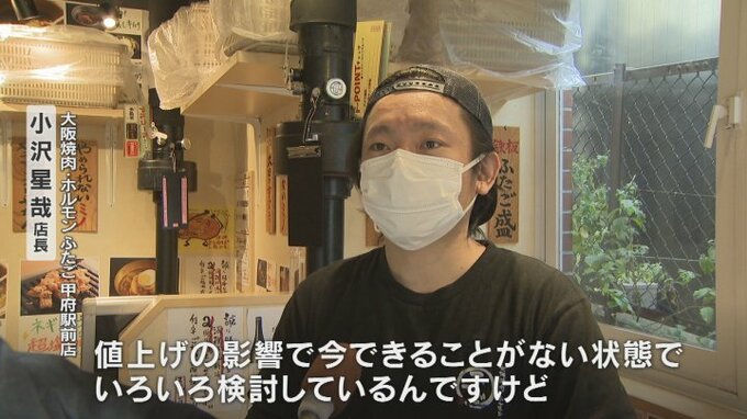 値上げの影響で今できることがない状態で、いろいろ検討しているんですけど、今現状ですと何もできない。