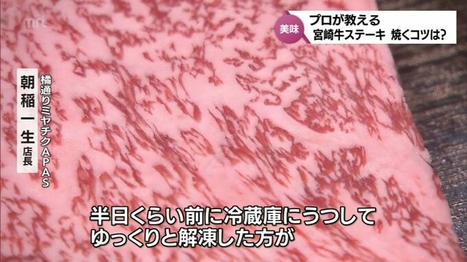 11月29日は「いい肉の日」。お得に購入できるということで、きょうは宮崎牛を食べようという人もいるんじゃないでしょうか。ということで、宮崎牛のステーキを自宅でおいしく焼くコツをプロに教えてもらいました。