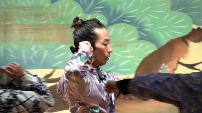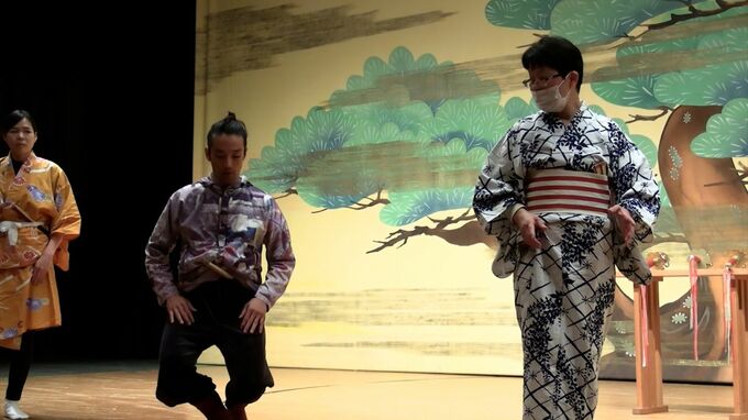芸術祭で披露するパフォーマンスのアイデアを得ようと奈義町に5日ほど滞在し江戸時代から続く伝統芸能の横仙歌舞伎を学びます。