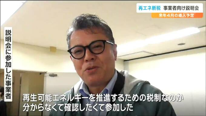 来年4月の導入が予定される宮城県の再エネ新税について、29日、仙台で事業者向けの説明会が開かれました。全国初の取り組みとあって参加者からは「どんな事業が課税対象となるのか」など具体的な説明を求める質問が相次ぎました。