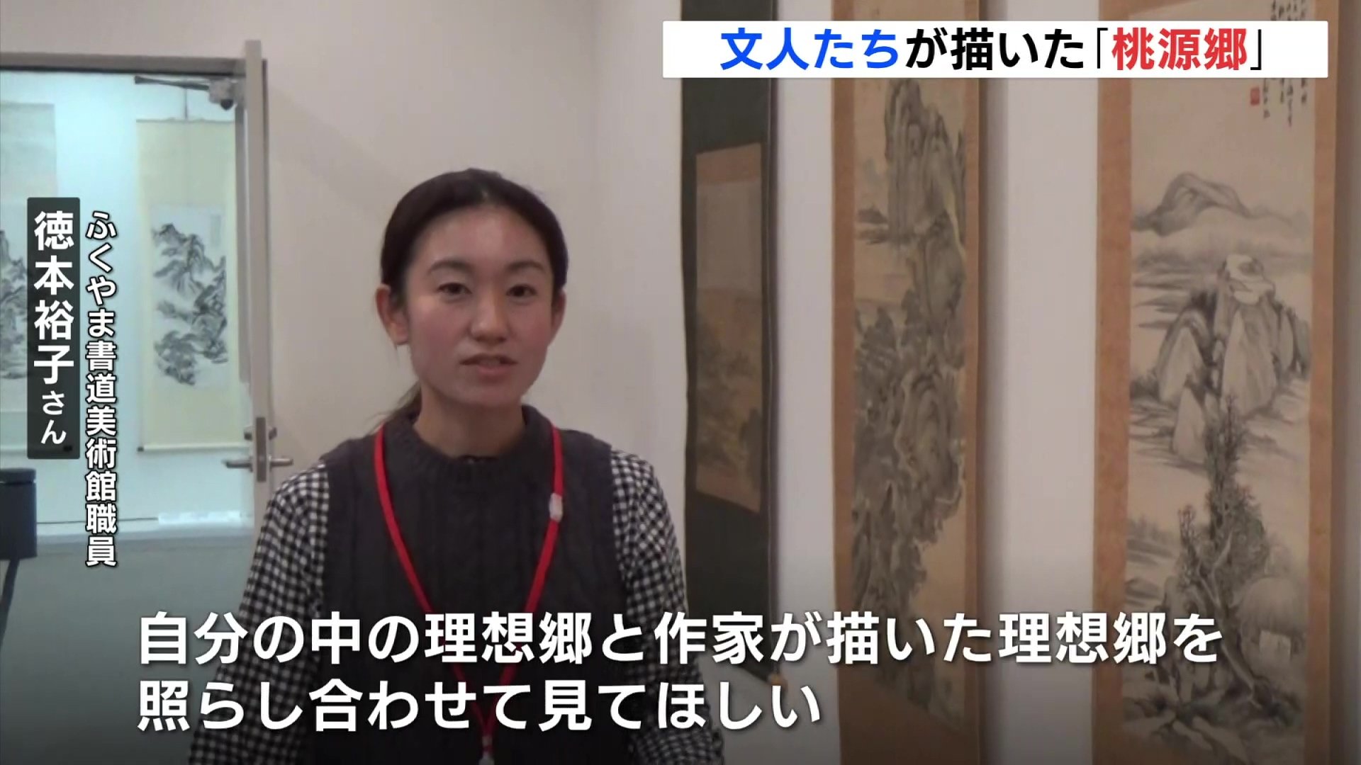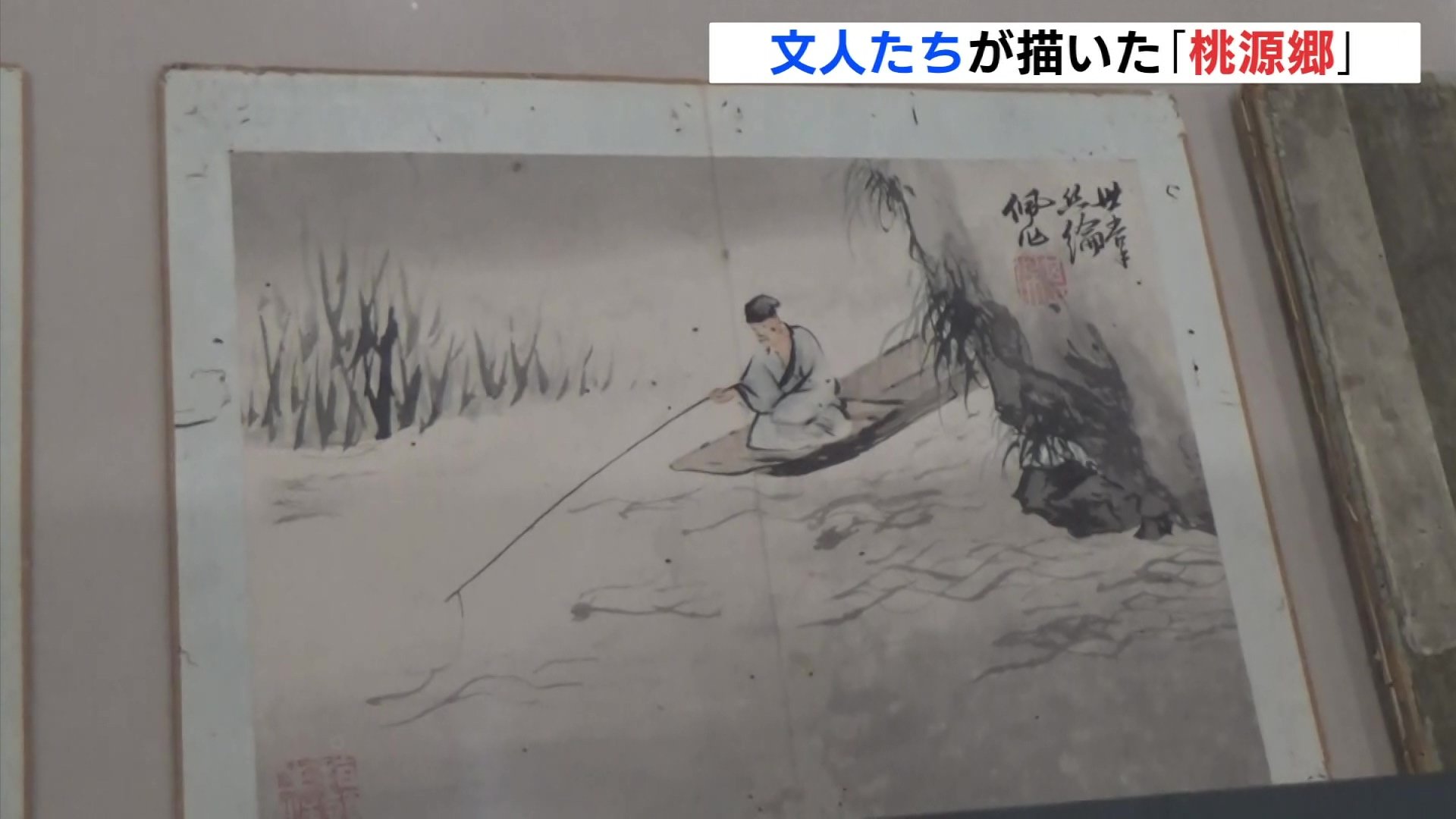 「桃源郷をたずねる」と題した展示では、中国・明の時代から現代までの山水画など55点を並べています。山水画は実際の景色ではなく山や木、川を作者が理想とする景色に再構成したものです。